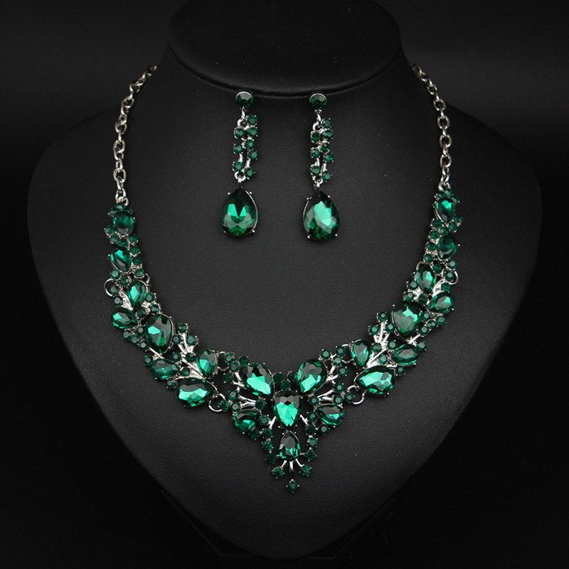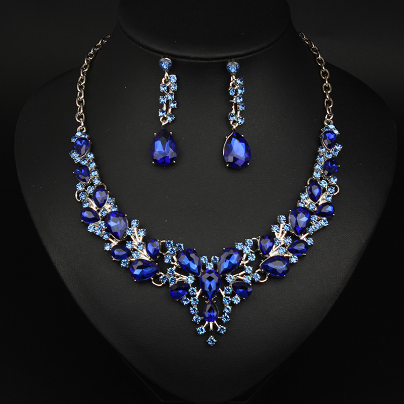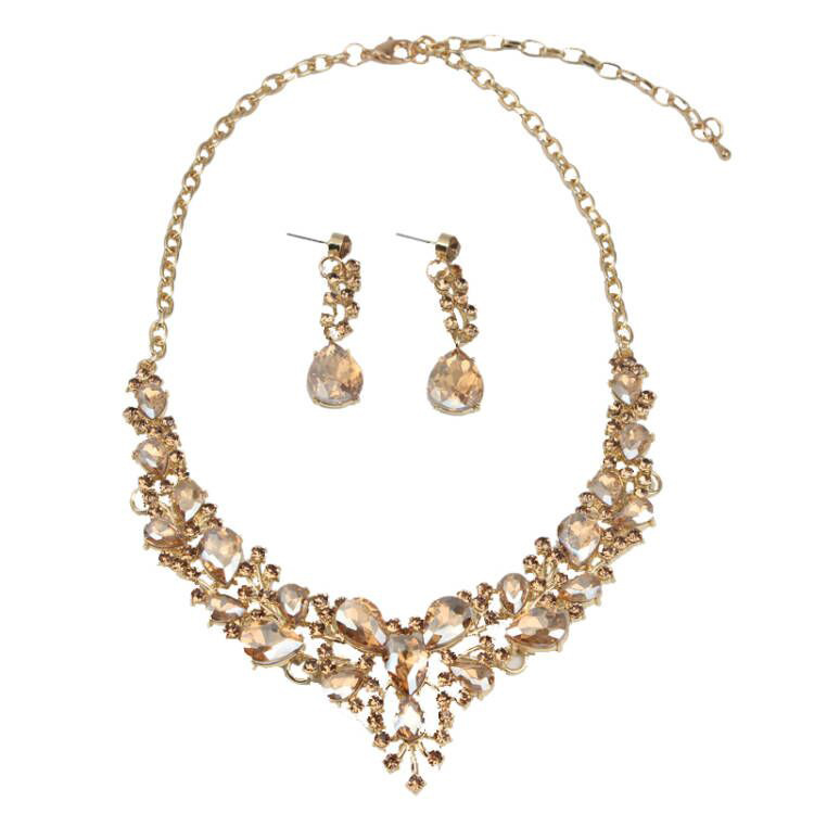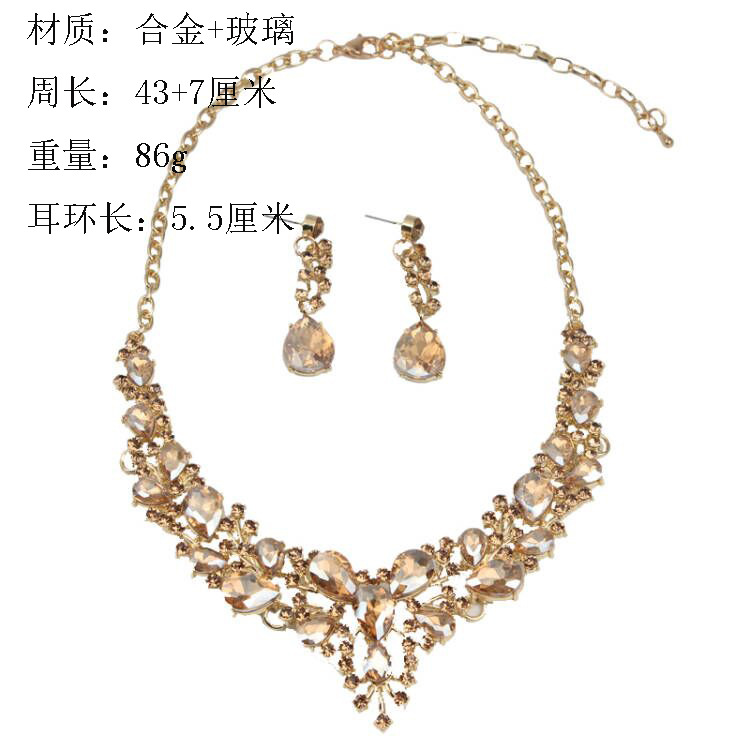 Cross-border e-commerce hot sale European and American fashion crystal necklace earrings set bridal wedding jewelry women’s jewelry wholesale