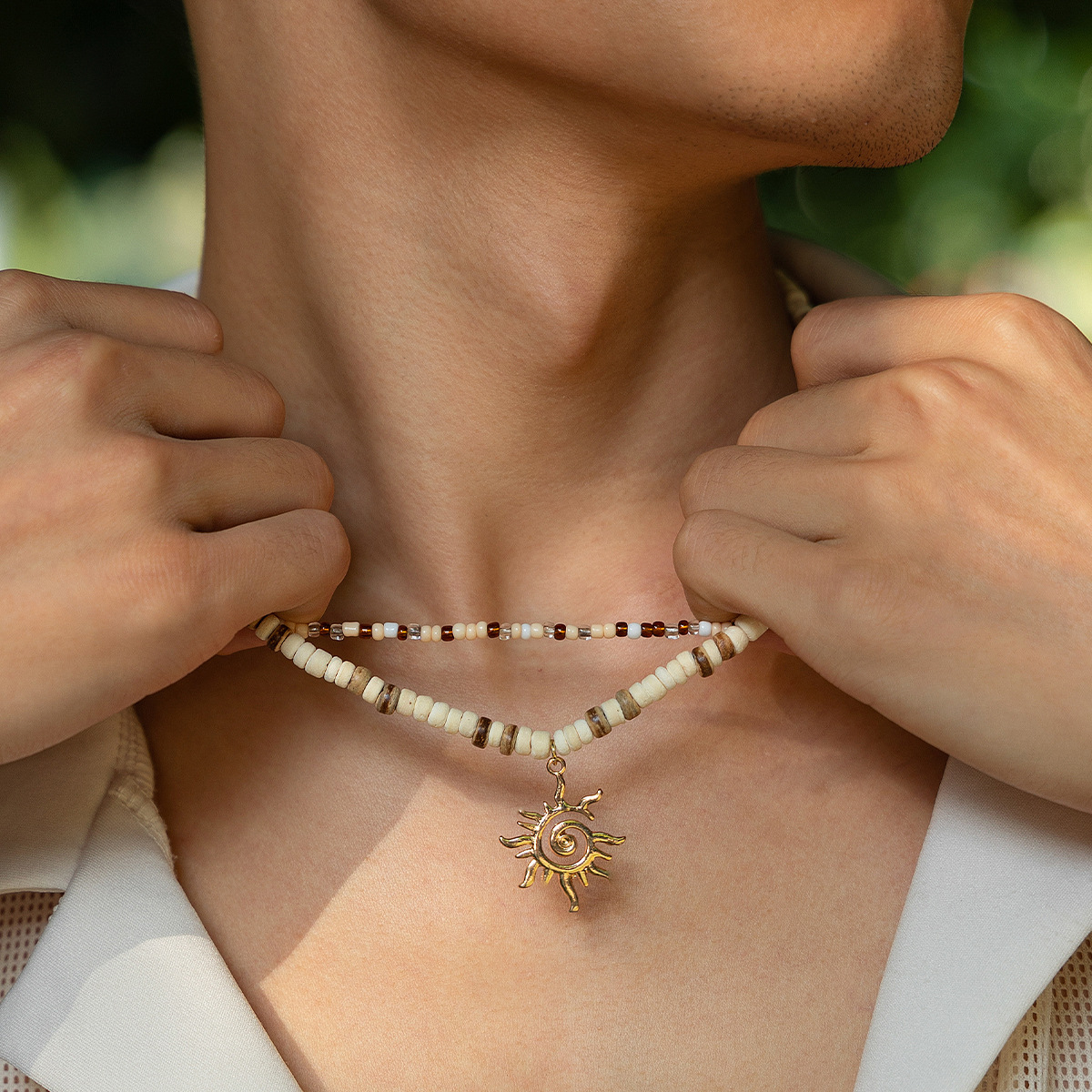 Fashion Coconut Shell Rice-shaped Beads Stringed Beads Necklace For Men