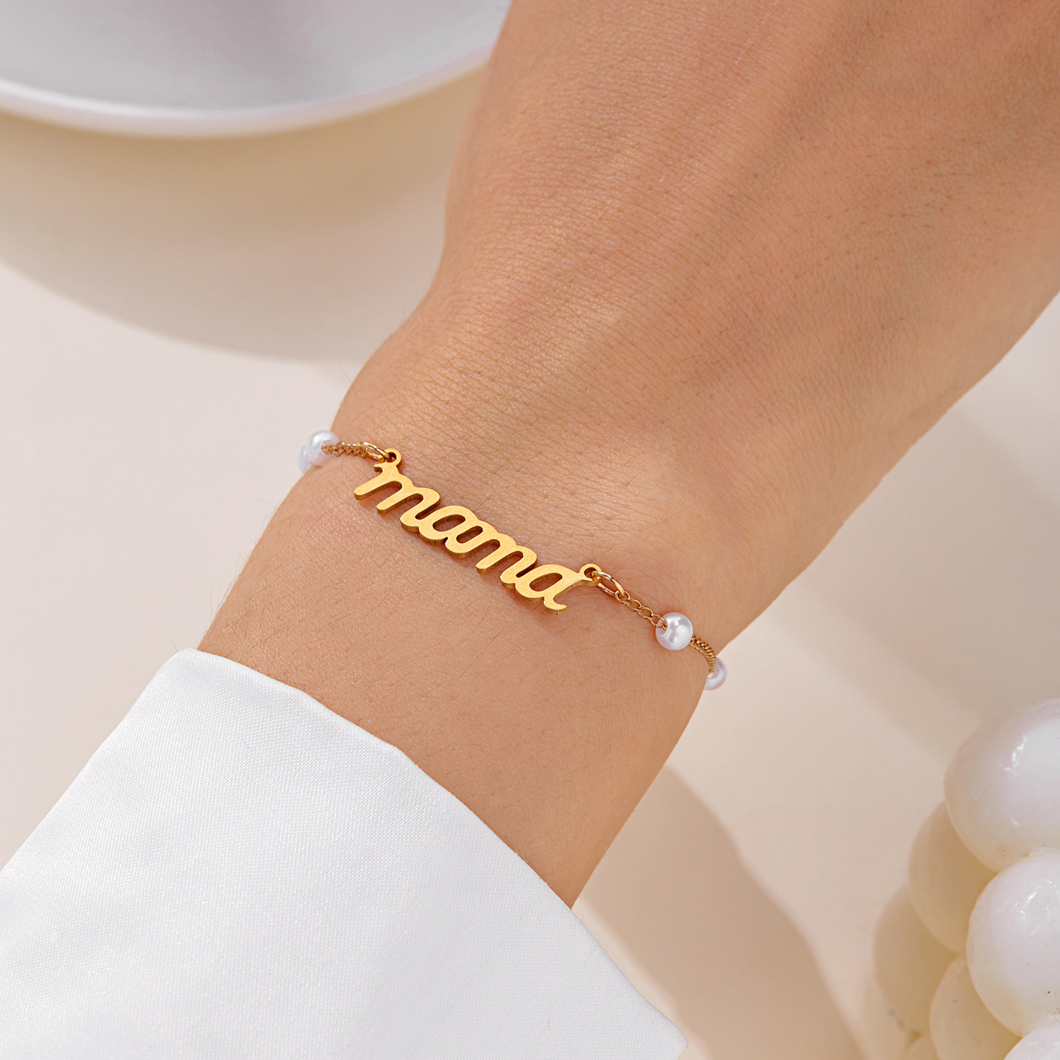 Fashion Mother’s Day Letter Mama Pearl Necklace Bracelet Set