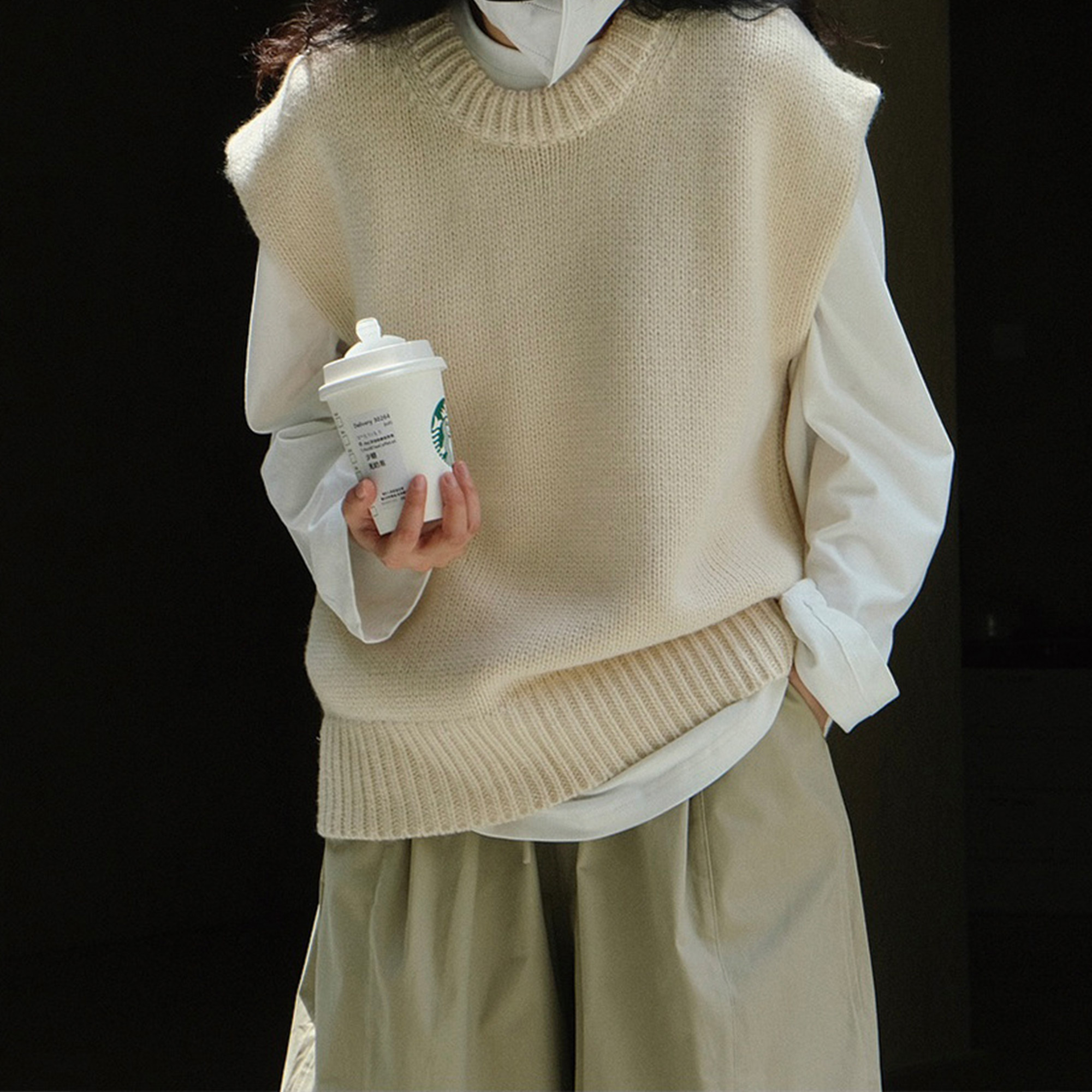Wool Round-neck Knitted Waistcoat Loose Solid Color Sleeveless Wool Vest Handmade Clothing Gift For Women Hand knit Outfit Of The Day